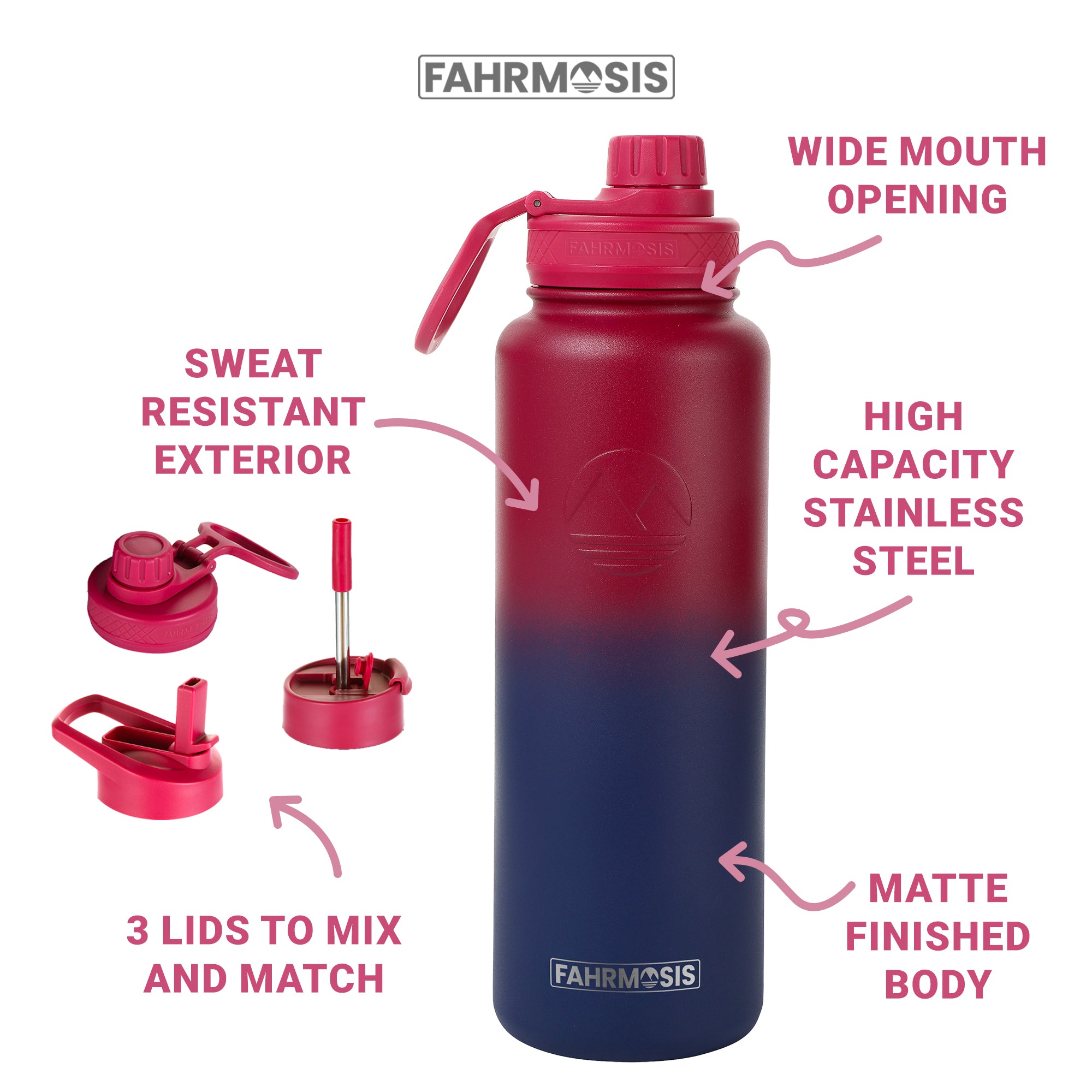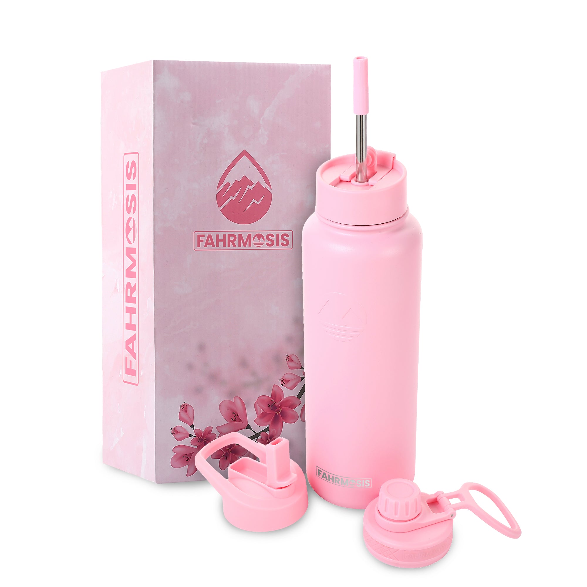 40 Oz Insulated Stainless Steel Water Bottle With Straw - Pink